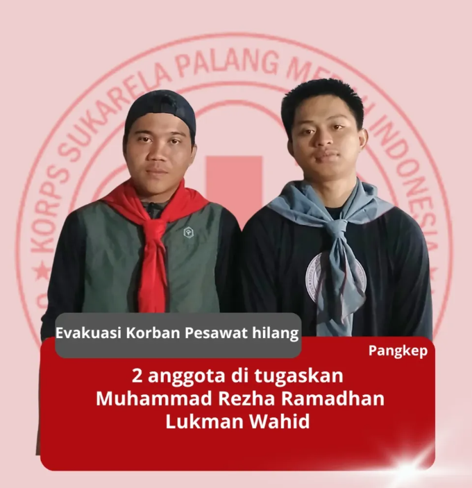 Dengan penuh rasa bangga Afriza Pratama Arap selaku Ketua Umum KSR PMI UMI mengucapkan terima kasih kepada Anggota yang telah di tugaskan dan kepada seluruh RELAWAN yang terlibat di lapangan karena bertahan hingga tugas di selesaikan serta Ketua Umum KSR PMI UMI mengucapkan Terima Kasih banyak kepada pihak BASARNAS karena telah mempercayakan KSR PMI UMI untuk terlibat dalam menanmgani benacan yaitu Pesawat Hilang yaitu ATR 42-500.